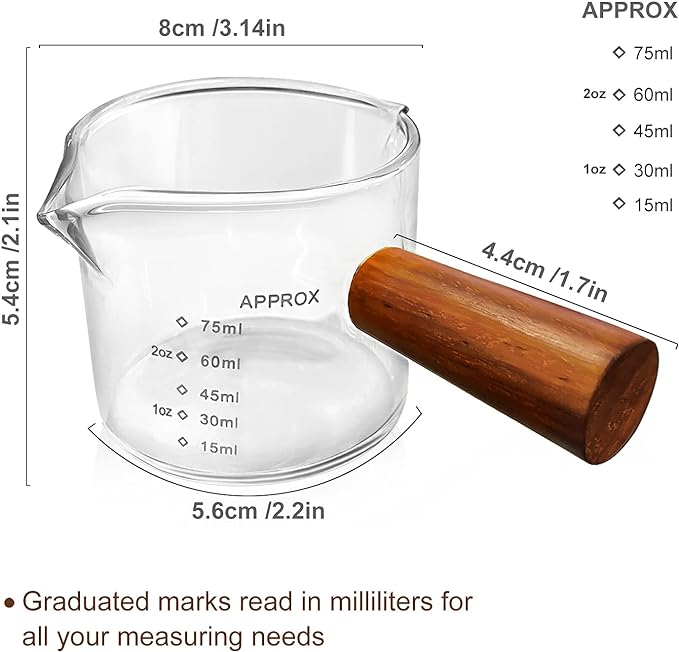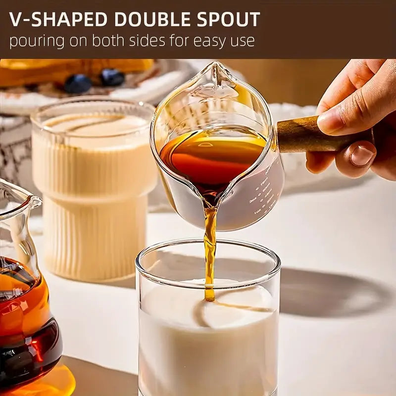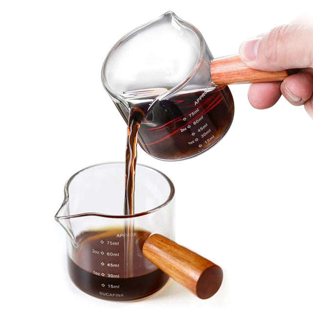 Expertly crafted with a wooden handle and double spout, our Espresso Shot Glasses are perfect for brewing and serving the perfect shot of espresso. With its precise design, you can enjoy a consistent pour every time, making it a must-have for any coffee lover looking to elevate their home brewing experience.