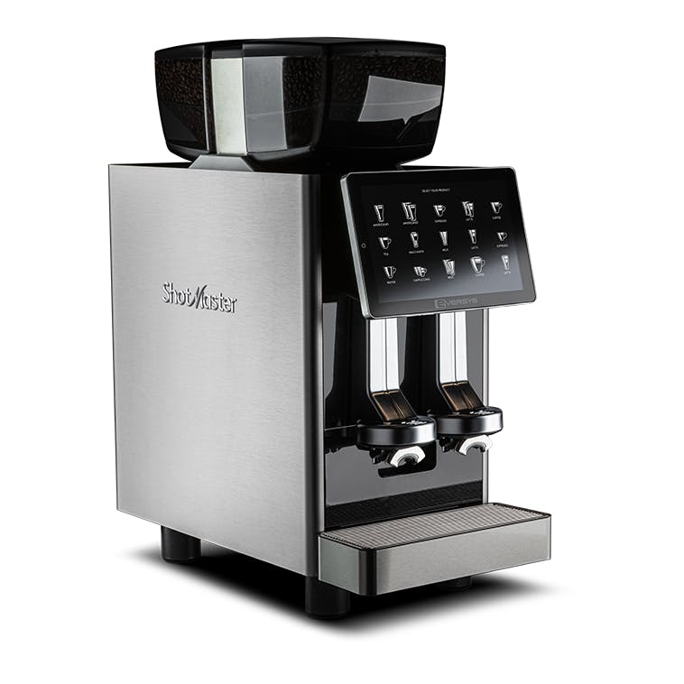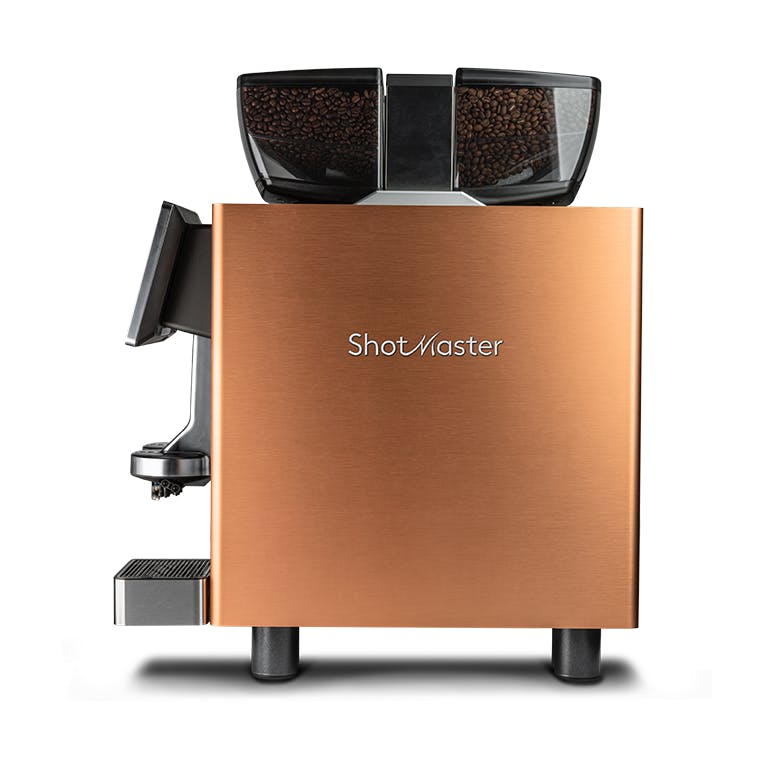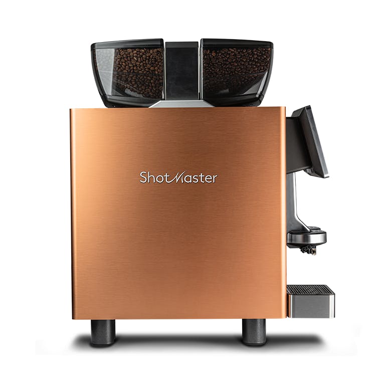 The Shotmaster c/ST is designed as a standalone machine with minimised footprint. It functions as a fully automatic machine, providing up to 4 espresso at a time on 28 cm of space. Its effortless productivity – up to 350 espresso per hour, is ideal for high volume environments where espresso shots with ultimate in-cup experience matters most.